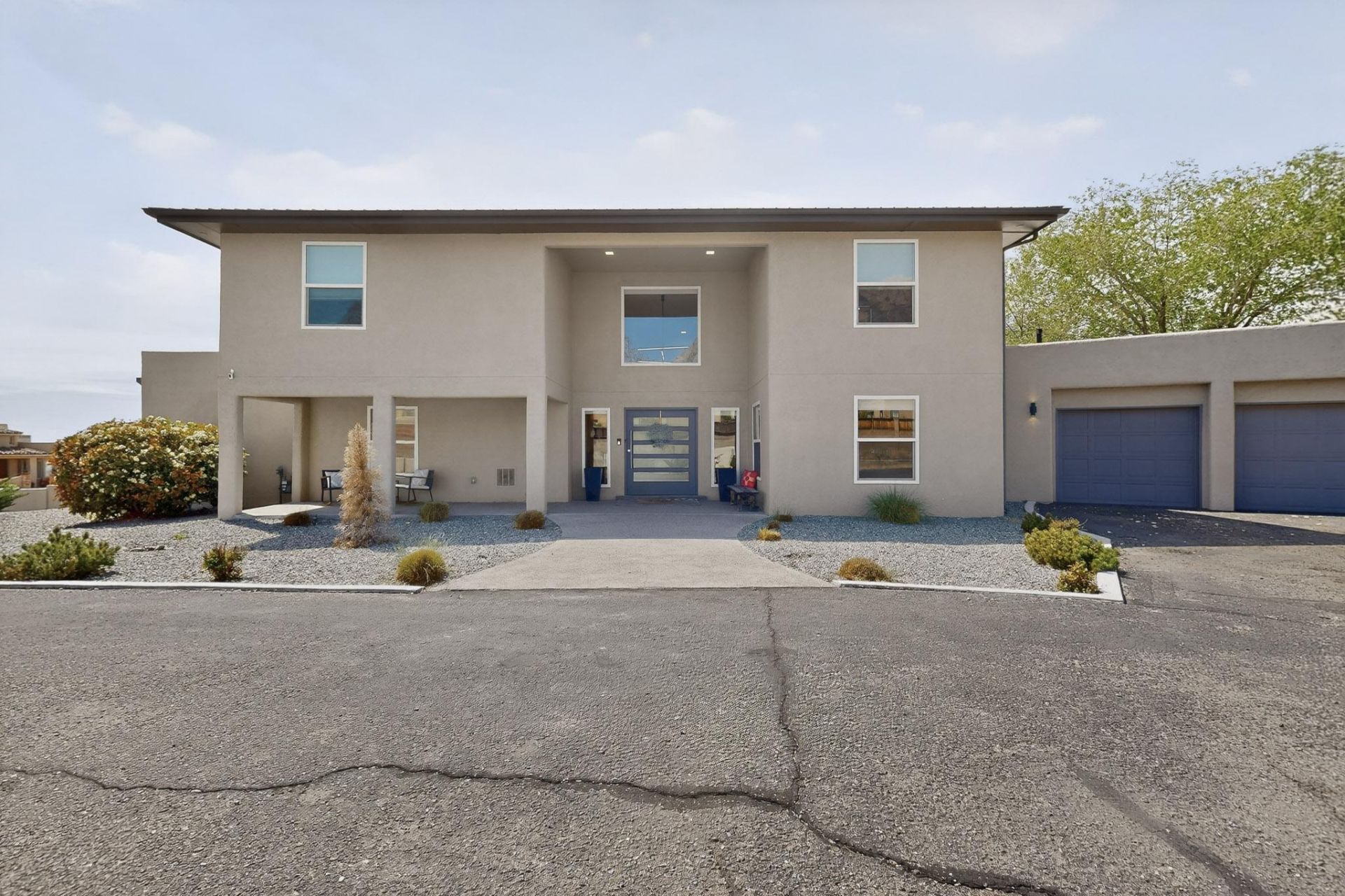 Remarkable contemporary style home on .87 acre. Gated corner lot with a private pool make this home an oasis. Large master suite boasts a private deck with sunset views. Kitchen is designed for large gatherings and easy access to covered patio and pool area.Recent updates include remodeled master bath, retiled showers in 2 bathrooms, new roof over gym and 3 car garage, window treatments throughout including black out blinds in all bedrooms w remote control, new automatic pool cover that helps heat the pool using New Mexico sunshine!